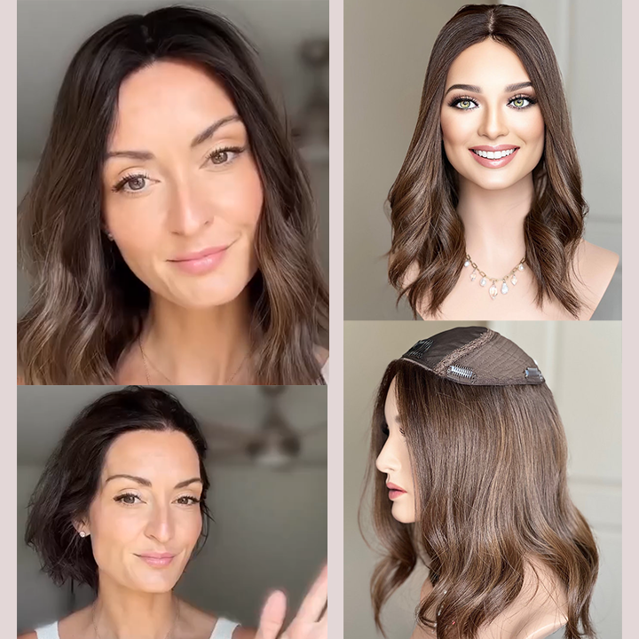 New Color Brigette丨Wavy Hair Topper丨 Full-sized Base 丨Better & Fuller Coverage丨 Natural Human Hair丨Ultra-thin Breathable Base