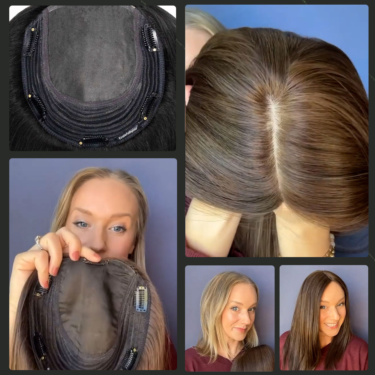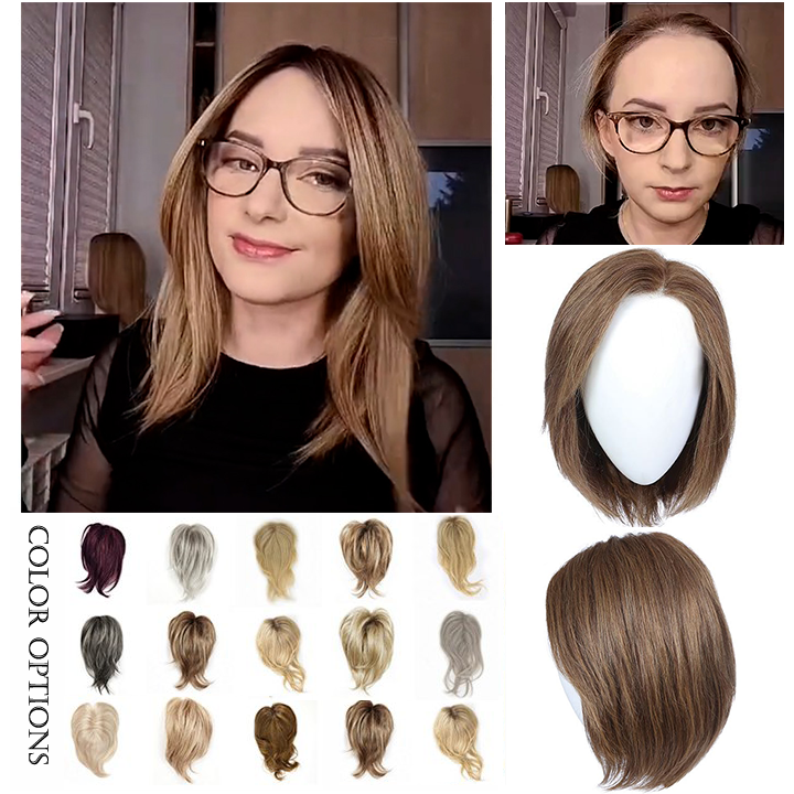 Natural Human Hair丨Straight Human Hair Topper for Women丨Instant Volume & Length丨Refresh Your Look with Clips