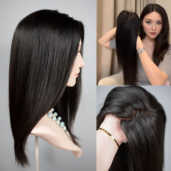 Straight Hair Topper丨Natural Human Hair丨Realistic Hairline丨Thin Breathable Base丨Hand-tied Silk Base