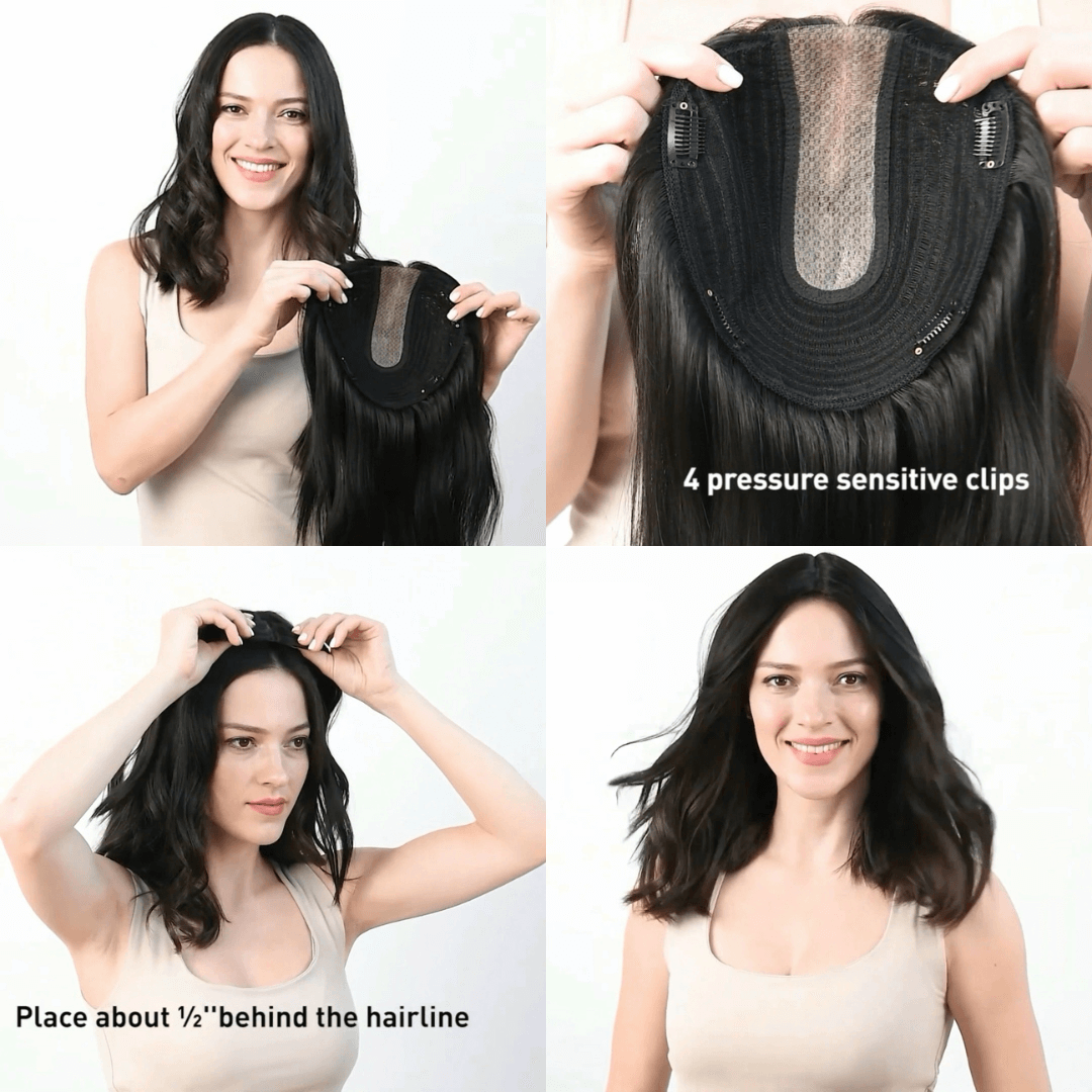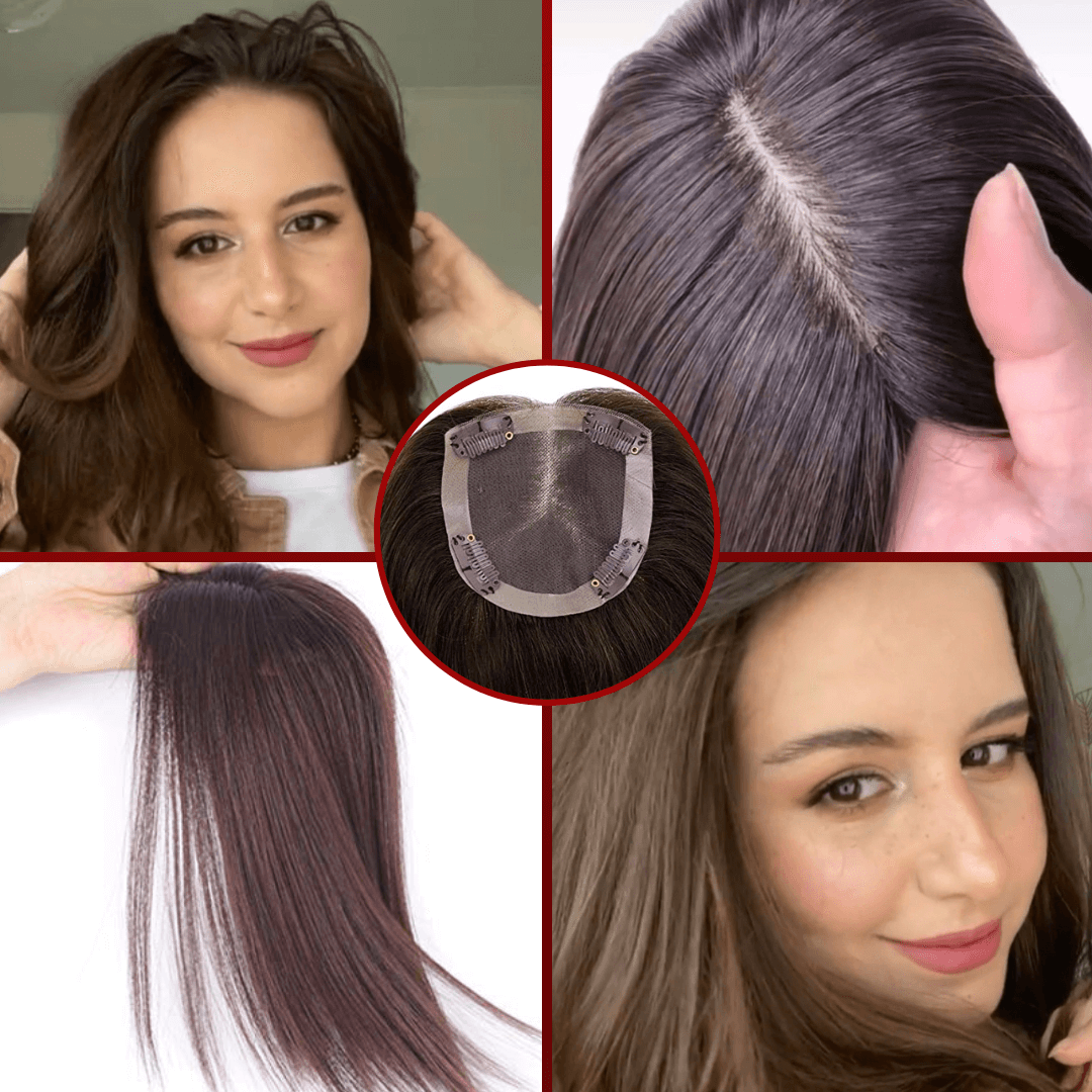 Natural Human Hair Topper - Silk Top Base Hair Topper - Straight Hair Natural and Seemless